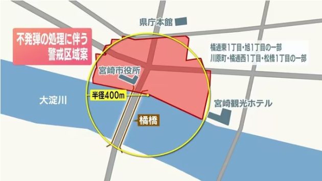先日、当館周辺の宮崎市役所付近にて不発弾が発見され、