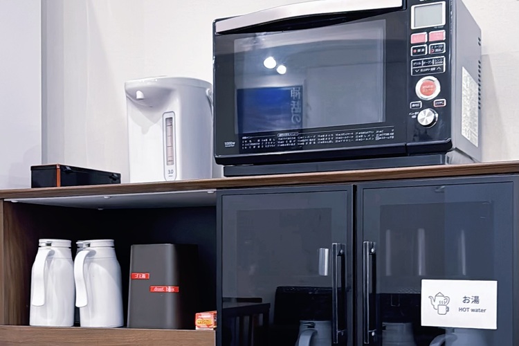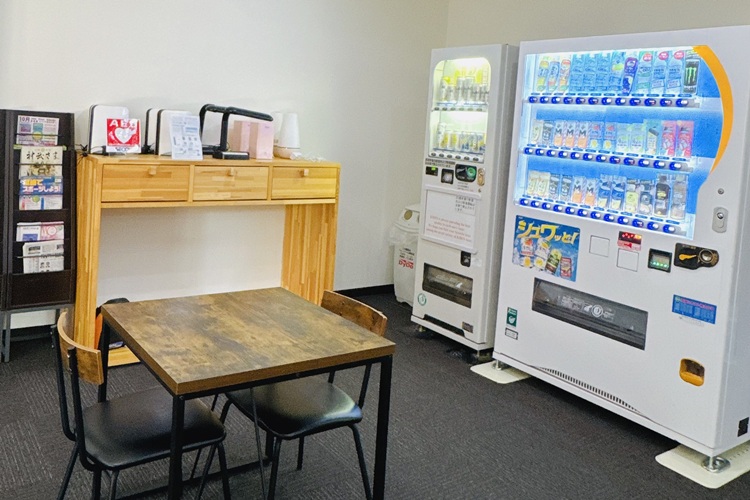 電子レンジや自販機などご滞在時に便利な備品を多数揃えております。お好きな時間にご利用ください。